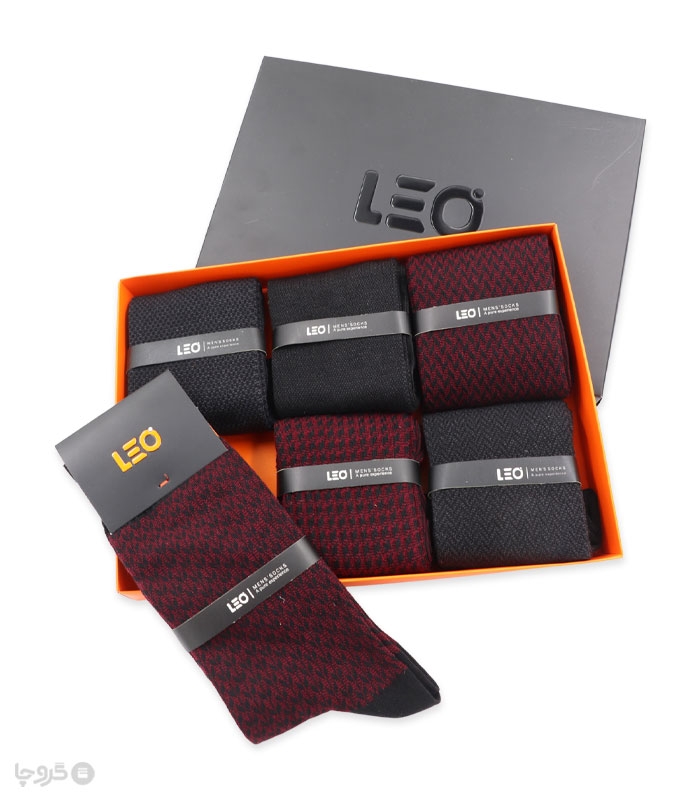 پک جوراب ساقدار مردانه لئو کد 122 مشکی قرمز - جعبه 6 جفتی