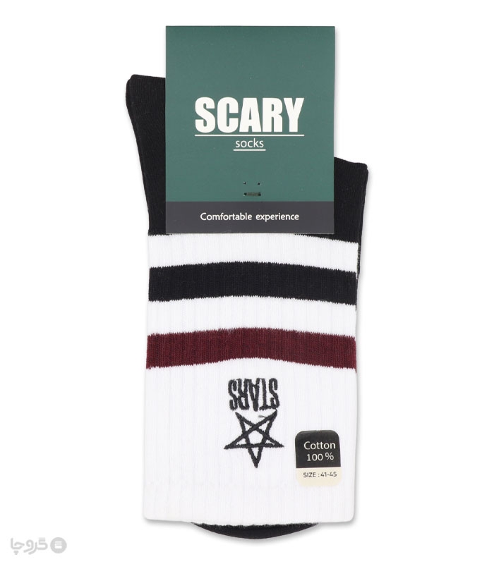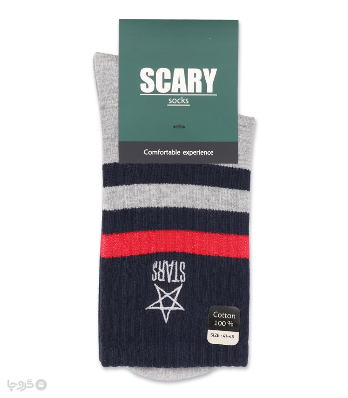 جوراب ساقدار مردانه کش انگلیسی اسکری کد 66506 گلدوزی طرح ستاره
