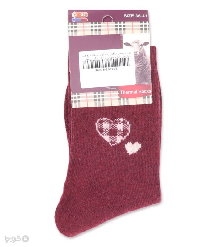 جوراب پشمی ساقدار زنانه کوکو اند هانا طرح قلب شطرنجی