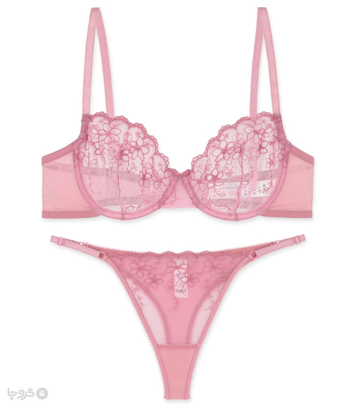 ست شورت و سوتین توری فنردار برتا گلدوزی کد 2020DP