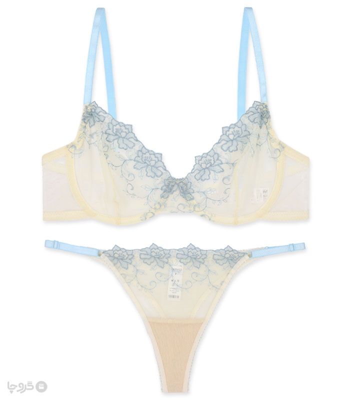 ست شورت و سوتین توری فنردار برتا گلدوزی کد 2020LI