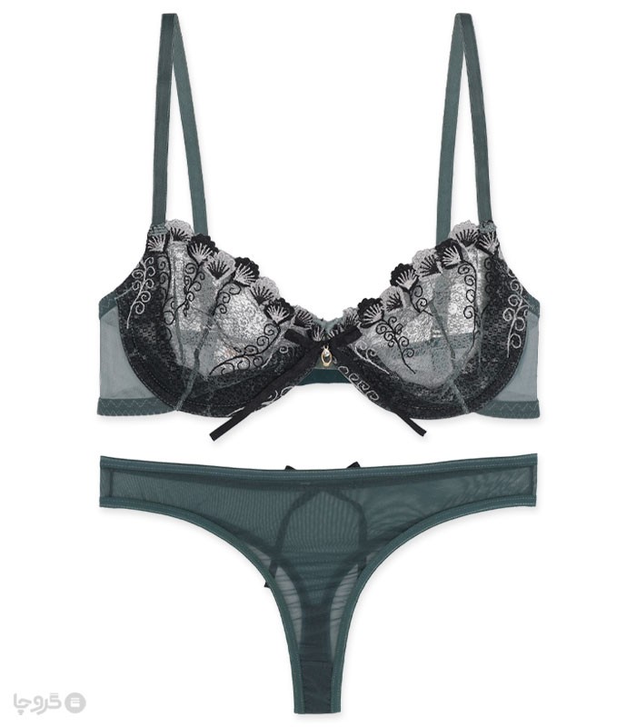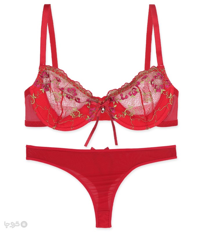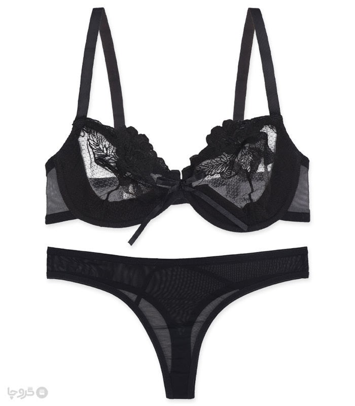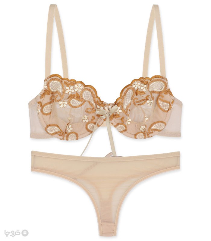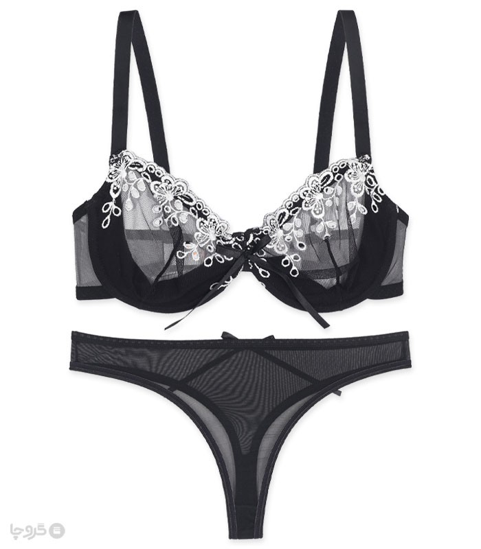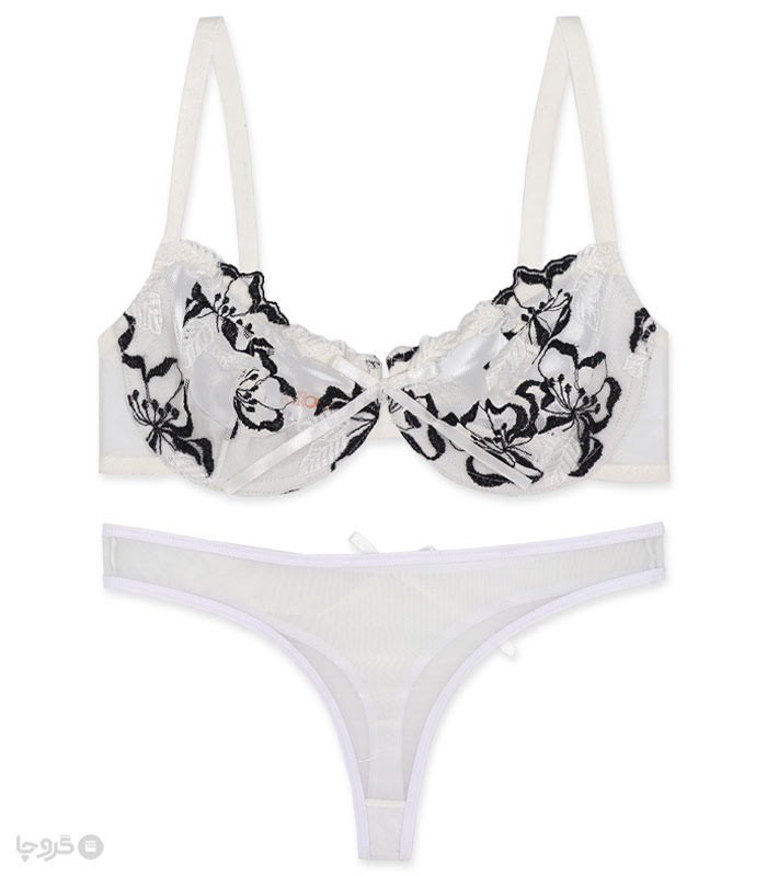 ست شورت و سوتین توری فنردار بارون گلدوزی کد S6 مدل 03