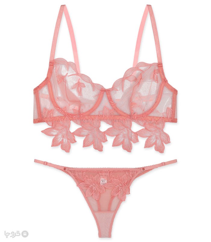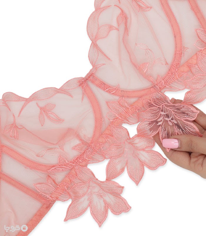 ست شورت و سوتین توری فنردار برتا گلدوزی کد 2442CO