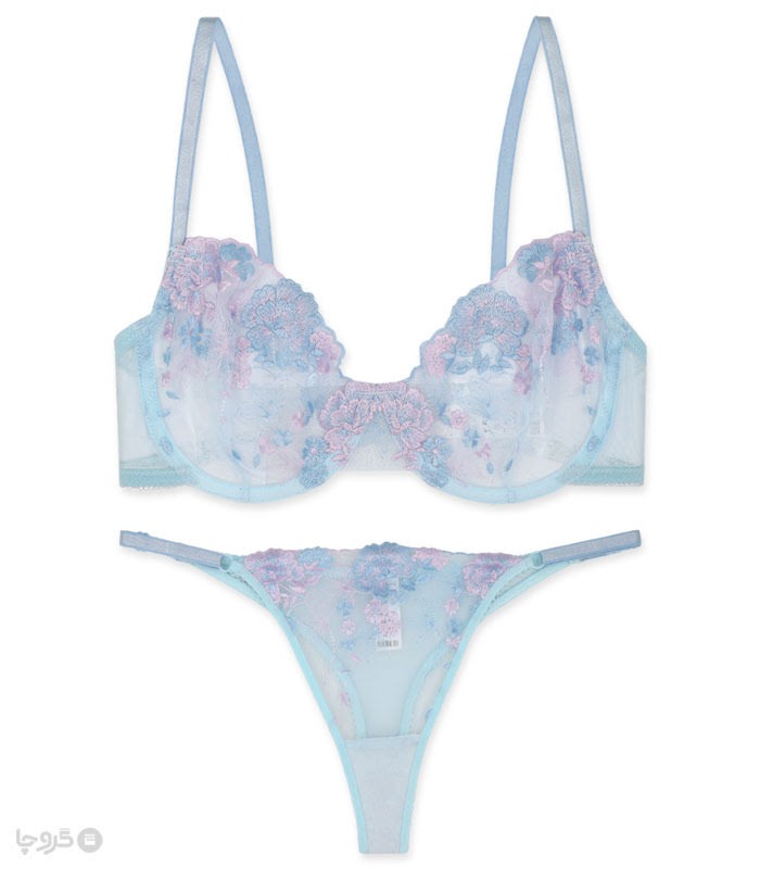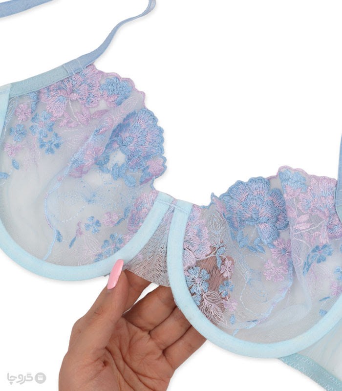 ست شورت و سوتین توری فنردار برتا گلدوزی کد 2020BU