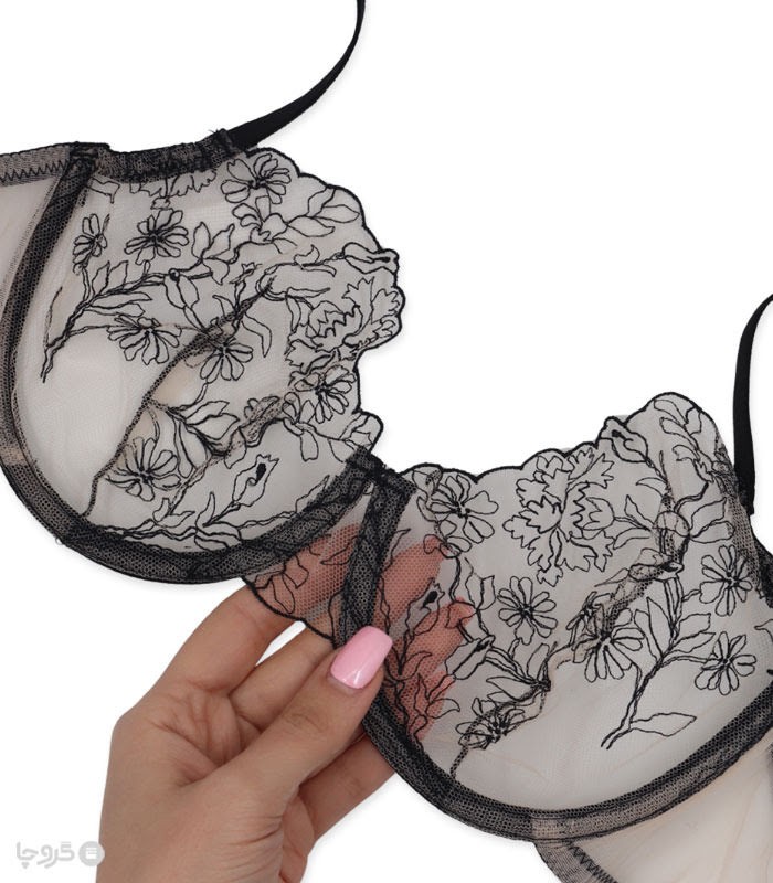 ست شورت و سوتین توری فنردار برتا گلدوزی کد 2020KZ