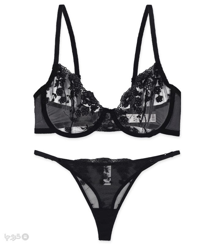ست شورت و سوتین توری فنردار برتا گلدوزی کد 2020NS