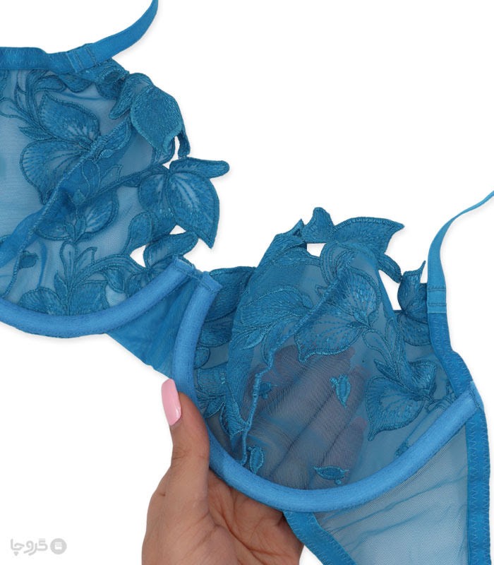 ست شورت و سوتین توری فنردار برتا گلدوزی کد 2020BO