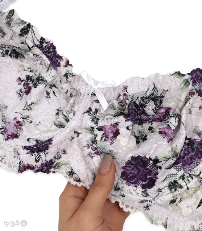 ست شورت و سوتین توری فنردار ژوبین کد 1998 طرح گل بنفش