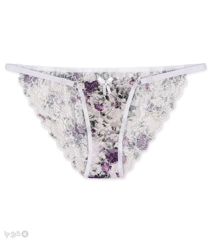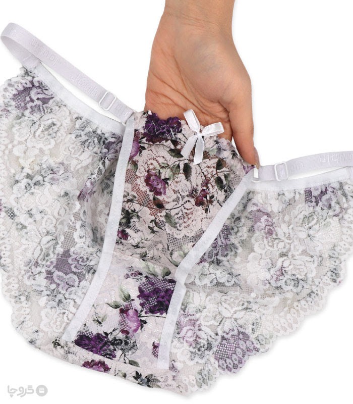 ست شورت و سوتین توری فنردار ژوبین کد 1998 طرح گل بنفش، از جنس توری بوده، سوتین این ست فنردار و مدل شورت تانگا، با لایه داخلی نخی است. شورت دارای بند قابل تنظیم بوده که میتوانید سایز آن را به اندازهای که میخواهید تنظیم کنید.