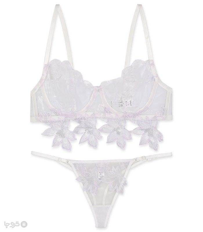 ست شورت و سوتین توری فنردار برتا گلدوزی کد 2442W