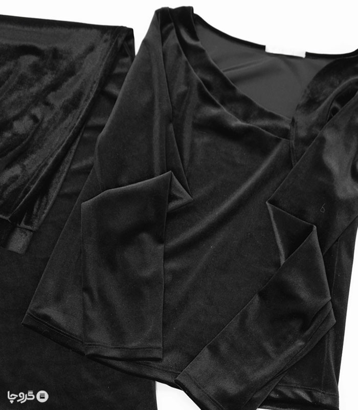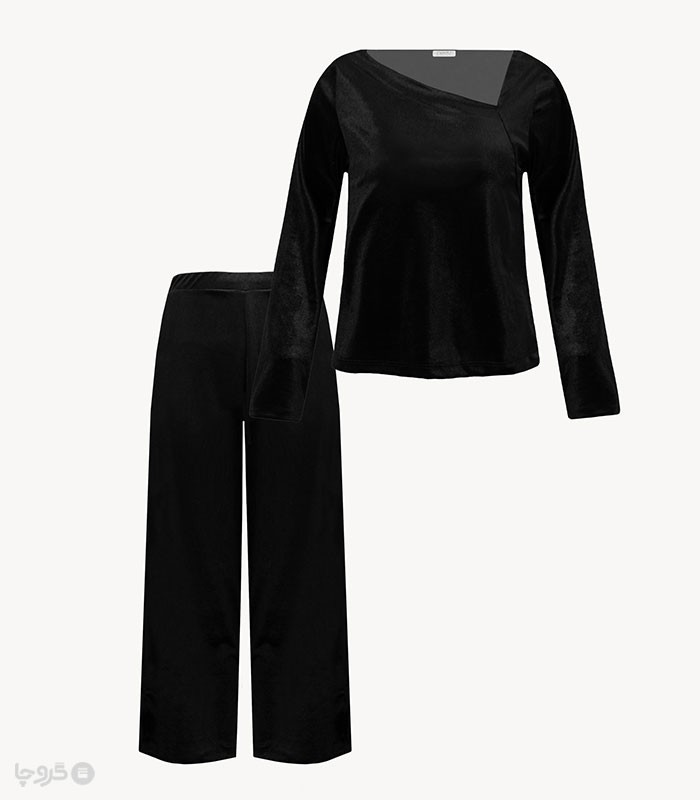 ست شلوار و بلوز مخمل نیو کد Elani، از جنس مخمل است. نوع بلوز آستین بلند و یقه کج بوده. شلوار ست Elani دارای کمر کشی است.