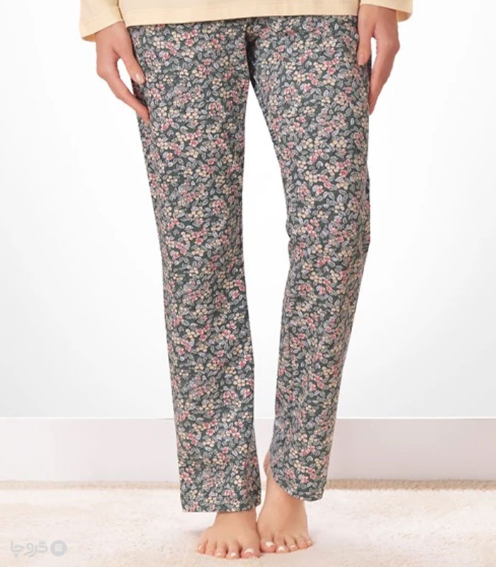 شلوار زنانه نخی ناربن کد WP3946 طرح باغچه