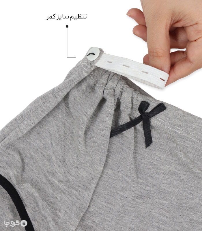 شورت بارداری نخی کد 8099، دارای فاق بلند و با پوشانندگی کامل شکم است.