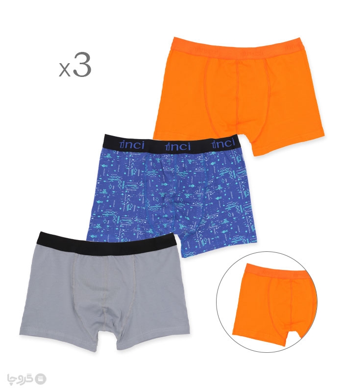 پک شورت مردانه نخی پادار بیر اینجی کد 1500 طرح 19 - بسته 3 عددی