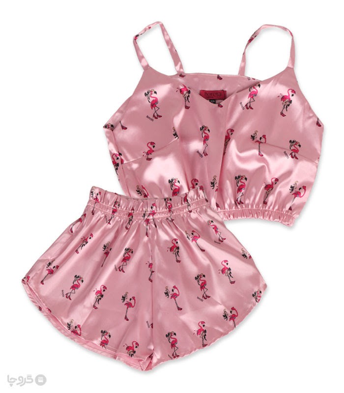 ست شلوارک و تاپ ساتن Bereta برتا کد 9014 طرح فلامینگو