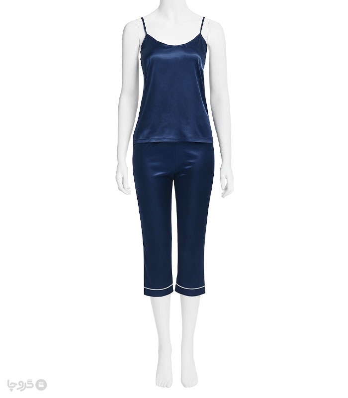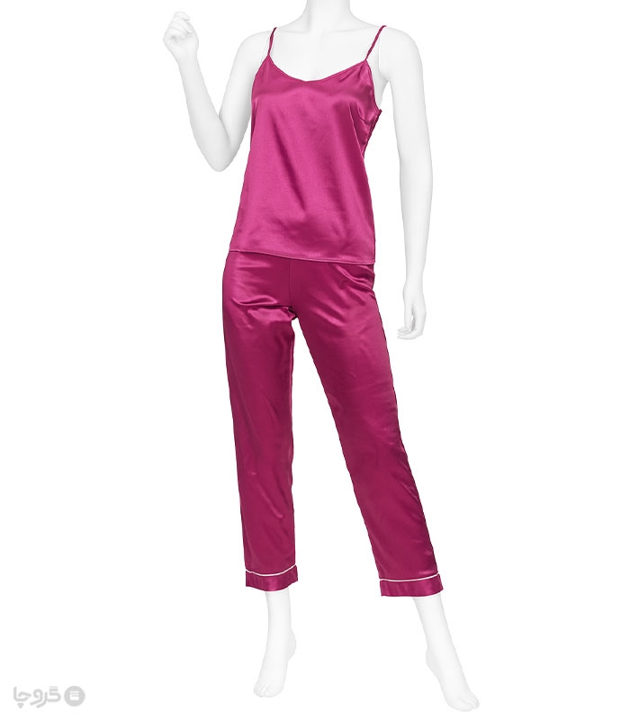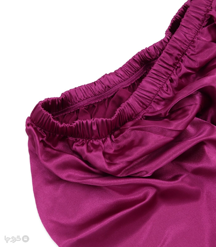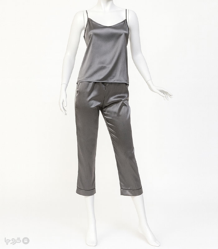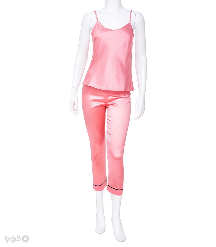 ساتن ست تاپ و شورتک تاپ بندی بند شانه ای قابل تنظیم کمر شورتک کشی