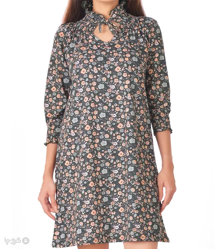 پیراهن آستین بلند زنانه نخی ناربن کد WD3957 طرح نقشینه