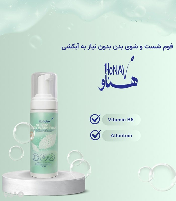 ★فوم شستشو بدن بدون آبکشی هناو - حجم 170 میلی لیتر