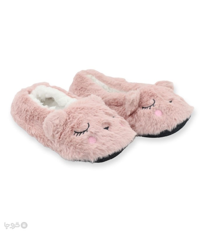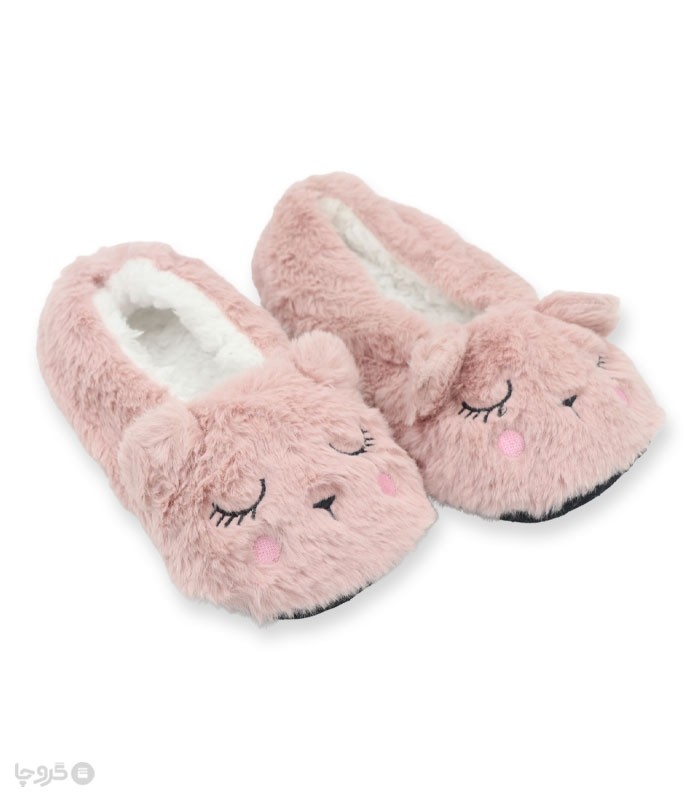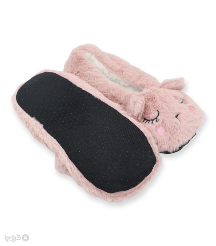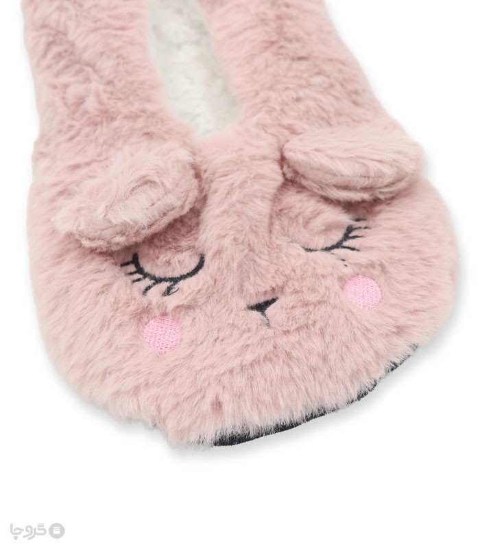 پاپوش پشمی گوشدار کف استپدار طرح خرگوش لپ گلی