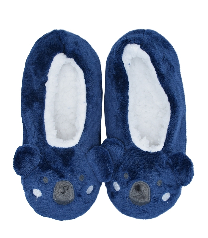 پاپوش پشمی گوشدار کف استپدار طرح کوآلا سرمه‌ای