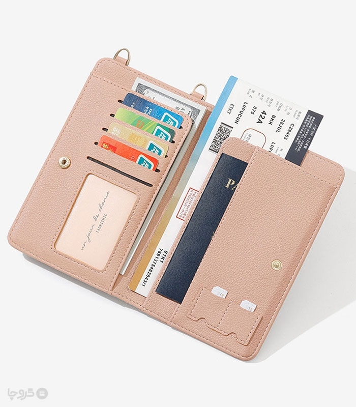 کیف پول زنانه به شما این امکان را می دهد تا بتوانید کارت‌های خود را داخل 5 جیب آن قرار دهید، برای مدارک، پاسپورت و پول نقد سه جیب بزرگ طراحی شده است. طراحی 1 جیب زیپ‌دار هم به شما این امکان را می‌دهد تا سکه‌های خود را در این قسمت قرار دهید و نگران افتادن و گم شدن آن‌ها نباشید. وجود یک محفظه عکس در این کیف موجب می‌شود تا همیشه به یاد عزیزانتان باشید و از دیدن عکسشان لذت ببرید. قسمت جلوی کیف دارای یک محفظه دکمه‌دار بوده که با طراحی قابل دسترسی که دارد گزینه مناسبی برای وسایل ضروری و تلفن همراه است.