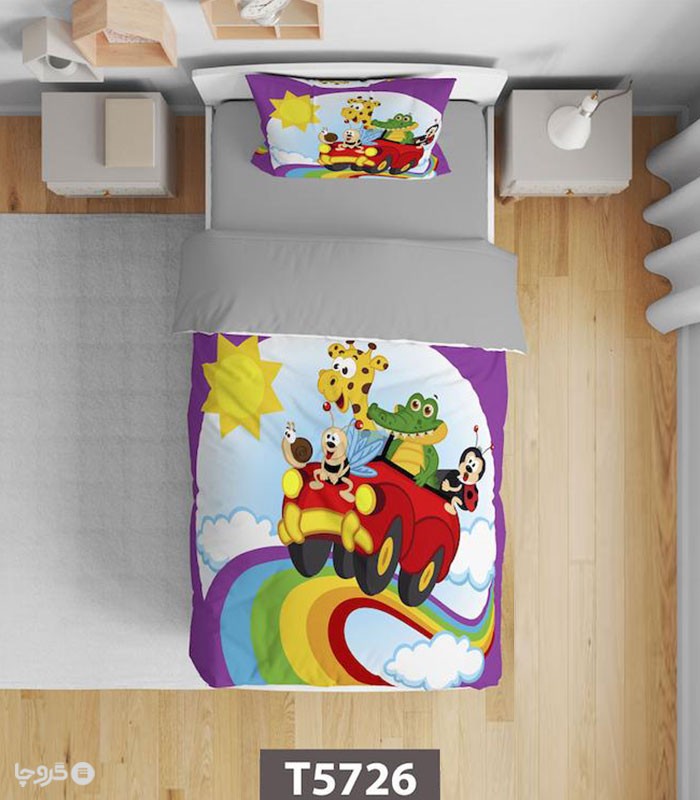 سرویس روتختی میکروفایبر کودک و نوجوان نوپه هوم کد T5726 طرح ماشین حیوانات