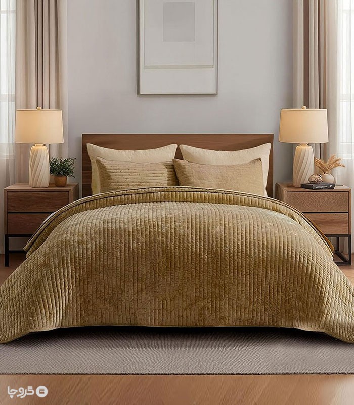سرویس روتختی کاوری مخمل پلیسه نوپه هوم طرح رویال – انتخابی بینقص برای خوابی راحت و دکوراسیونی شیک