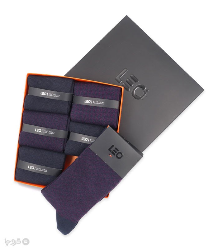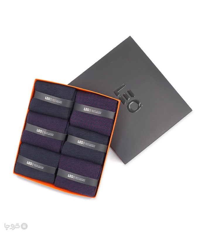 پک جوراب ساقدار مردانه لئو کد 131 سرمه‌ای بنفش - جعبه 6 جفتی
