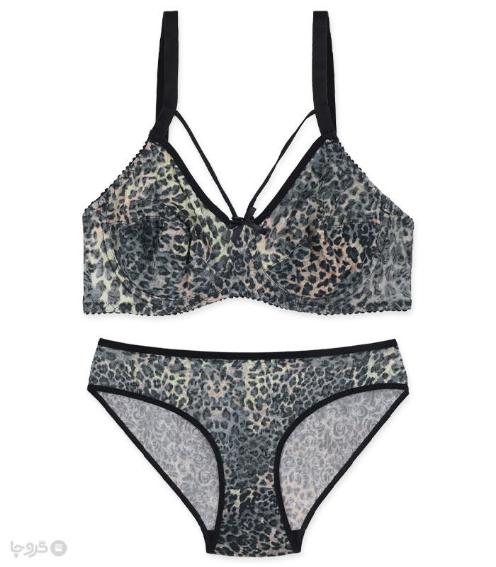 ست شورت و سوتین توری فنردار هارنس ژوبین کد 1347 طرح پلنگی