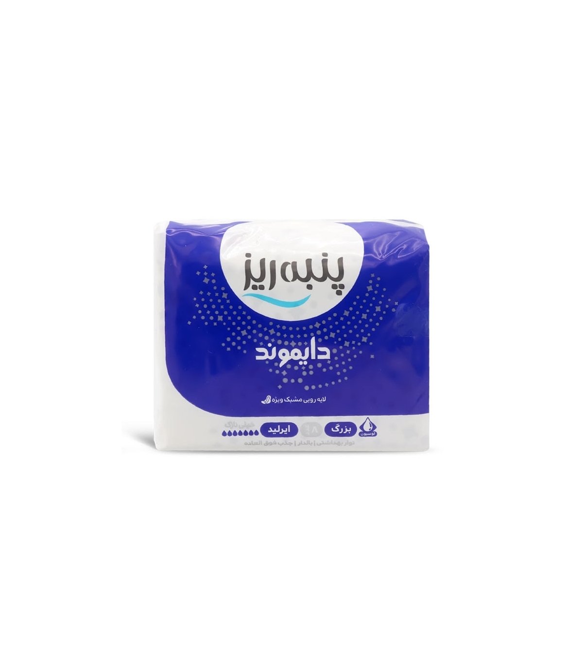 نوار بهداشتی بالدار خیلی نازک مشبک پنبه ریز مدل دایموند ایرلید بزرگ - کارتن 36 عددی