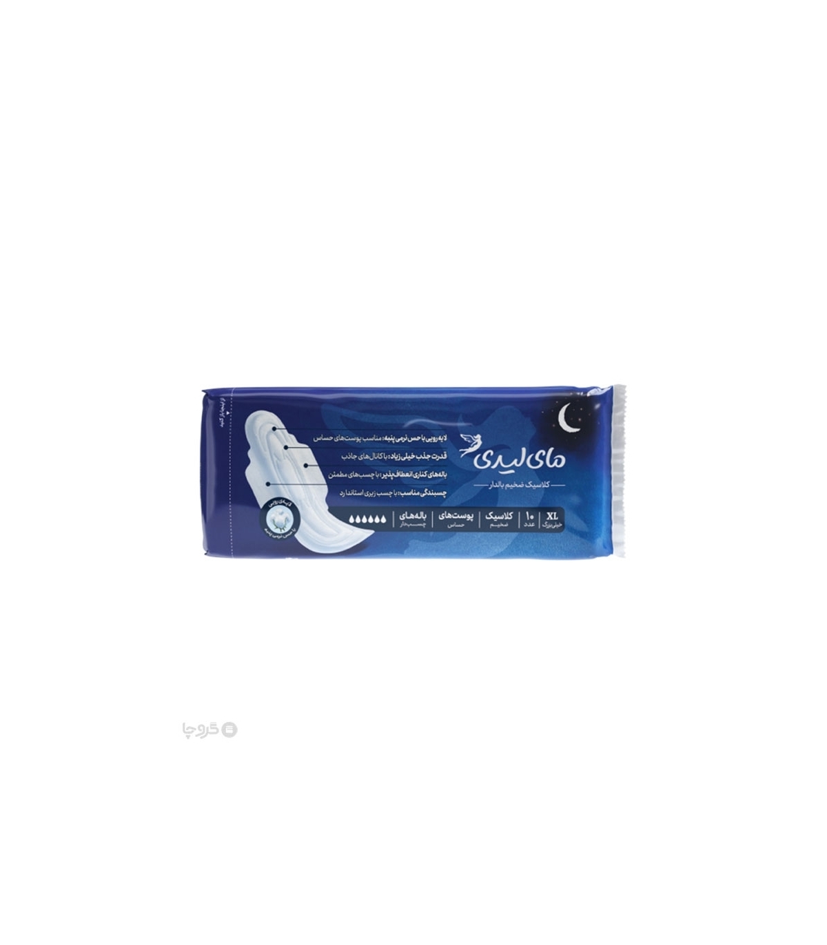 نوار بهداشتی بالدار ضخیم کتان مای لیدی مدل Classic Sensitive خیلی بزرگ - کارتن 40 عددی